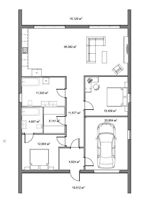 Одноповерховий модульно-каркасний будинок із гаражем – 138 м²
